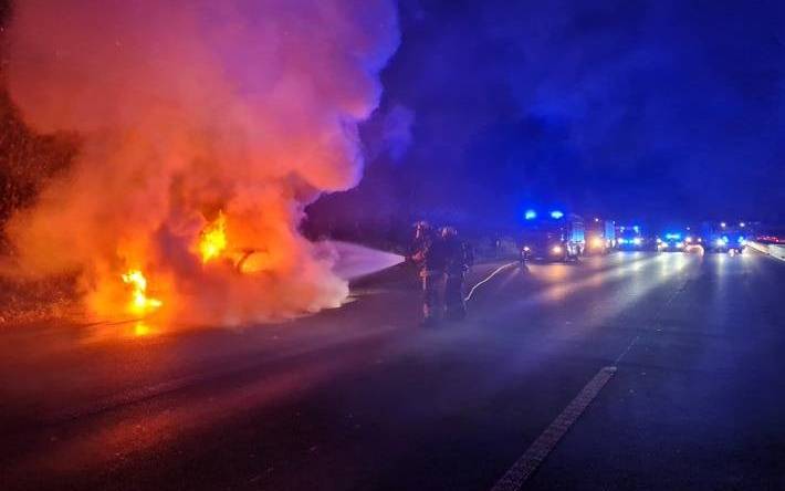 Auto auf A40 in Bochum in Flammen