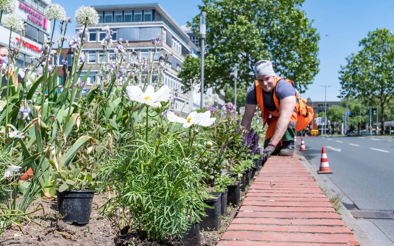 Die Stadt Bochum hat in den vergangenen Tagen die Innenstadt mit Blumen verschönert. Unter anderem sind vor dem BVZ, vor dem Hauptbahnhof und auf dem Willy-Brandt-Platz vor dem Rathaus insgesamt 2.500 Blumen gepflanzt worden. Darunter sind Geranien, Begonien, Glockenblumen, Spinnenblumen, Goldmarie und Schmuckkörbchen.