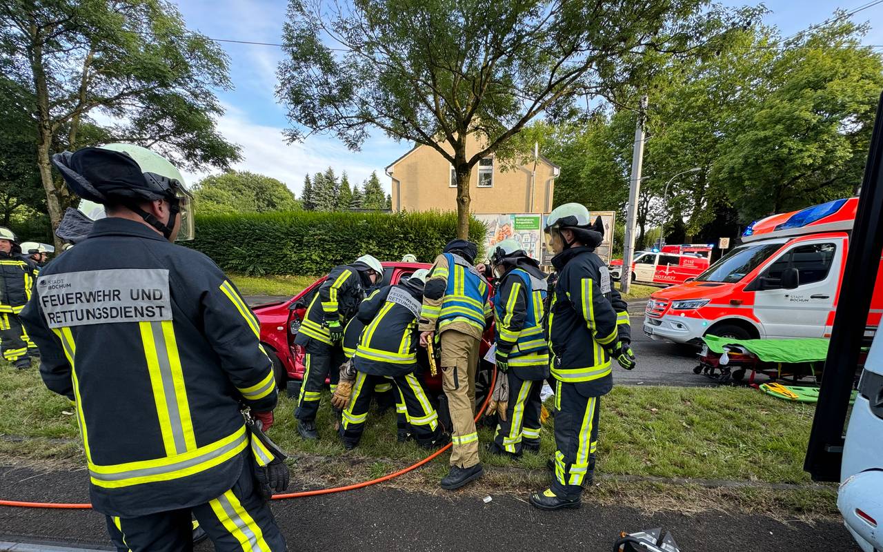 Die 67jährige Fahrerin ist bei einem Wendemanöver mit der Straßenbahn zusammengestoßen. Da die Feuerwehr die Türen des Autos nach dem Unfall nicht mehr öffnen konnte, musste die Frau aus dem Wagen befreit werden. Sie wurde danach schwer verletzt ins Krankenhaus gebracht. Die Feuerwehr Bochum konnte um 21.45 Uhr wieder abrücken. Während des Einsatzes musste der Unfallbereich auf der Castroper Straße für den Verkehr gesperrt werden.