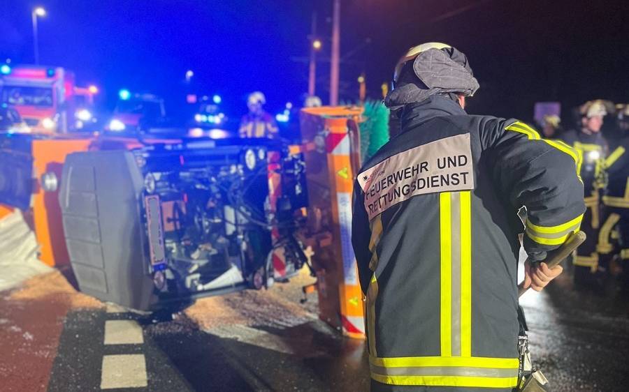 Feuerwehr Bochum: Streufahrzeug umgekippt