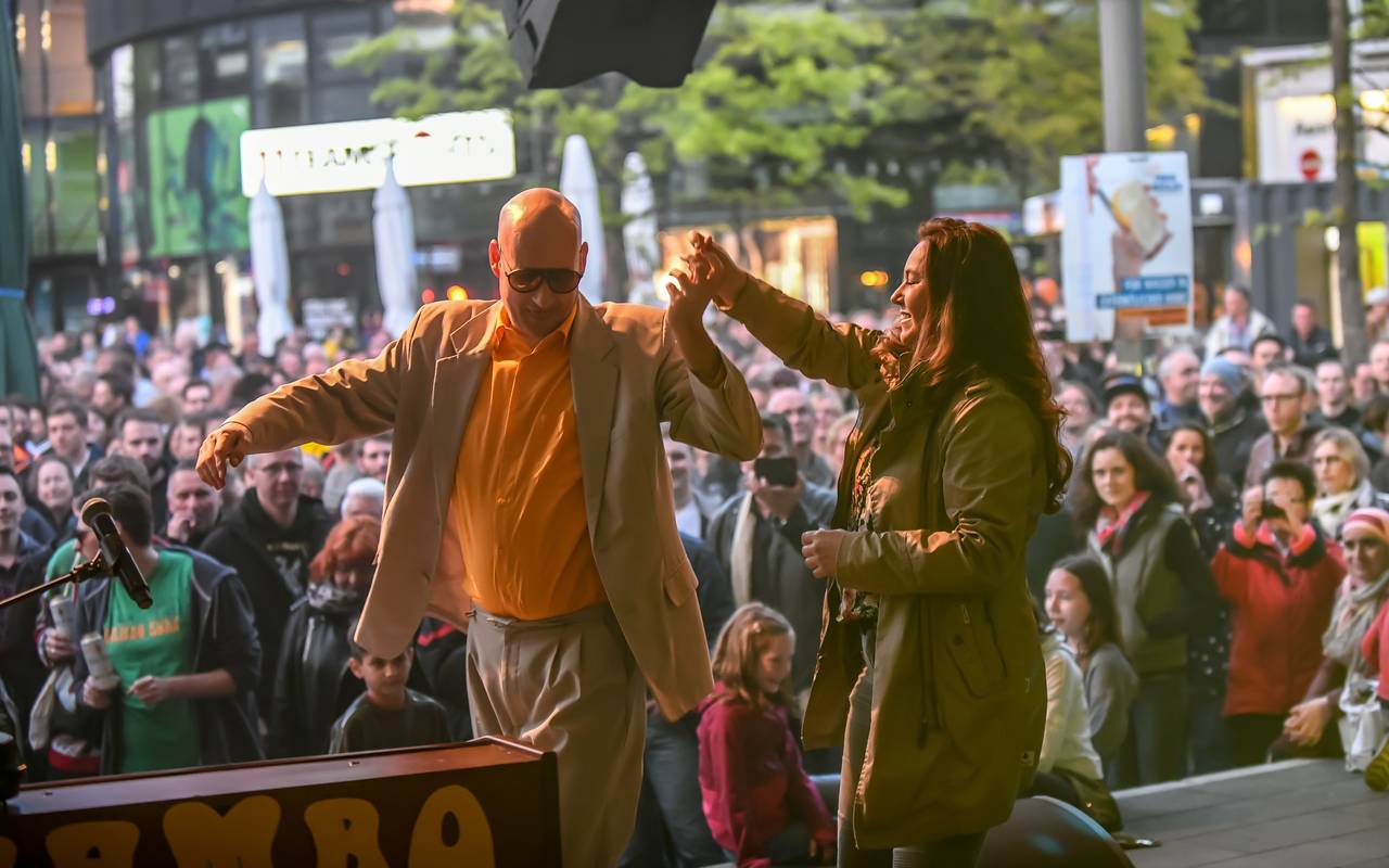 Zur Eröffnung der Außensaison waren im Bermuda3Eck zum Beispiel einige Klaviere und ein Flügel aufgestellt. An denen haben verschiedene Künstler performt. Es gab auch Live-Musik und einen Flohmarkt auf dem Konrad-Adenauer-Platz am Bermuda3Eck.