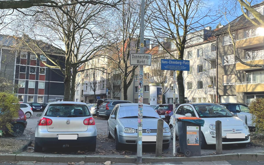 Am Hans-Ehrenberg-Platz in Bochum-Ehrenfeld soll eine neue Spielfläche für Kinder entstehen. Die Stadt Bochum plant die Spielfläche gemeinsam mit den Anwohnerinnen und Anwohnern.