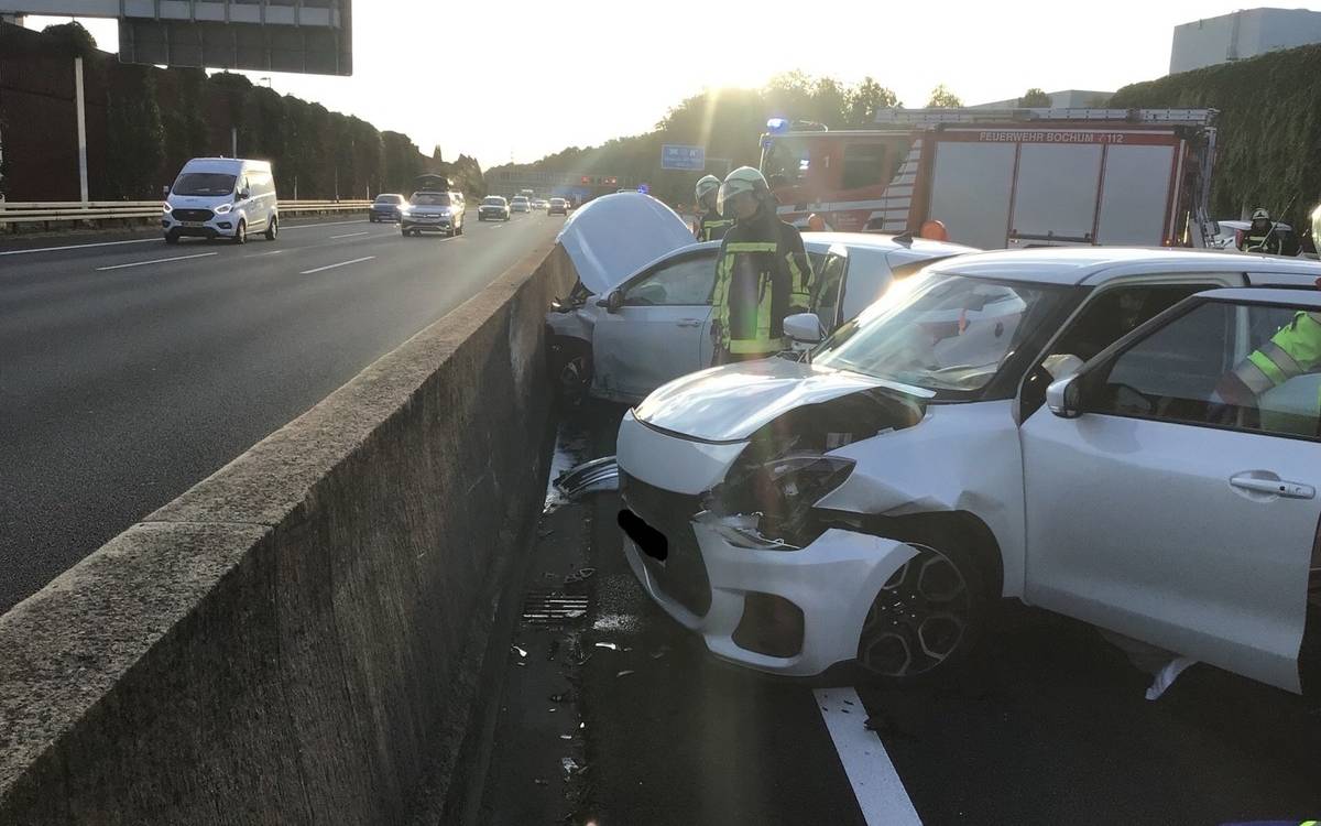 Mitten im Berufsverkehr hat es am Morgen in Bochum auf der A40 in Richtung Dortmund kurz hinter der Anschlussstelle Dückerweg einen schweren Unfall gegeben. Laut der Feuerwehr wurden dabei drei Menschen zum Teil schwer verletzt und mussten ins Krankenhaus gebracht werden. Der Unfall passierte gegen viertel nach 7, zwei Autos waren verwickelt. Für den Einsatz musste rund eine Stunde lang eine Spur der Autobahn gesperrt werden. Fast 30 Einsatzkräfte waren im Einsatz. Die Unfallursache wird noch ermittelt.